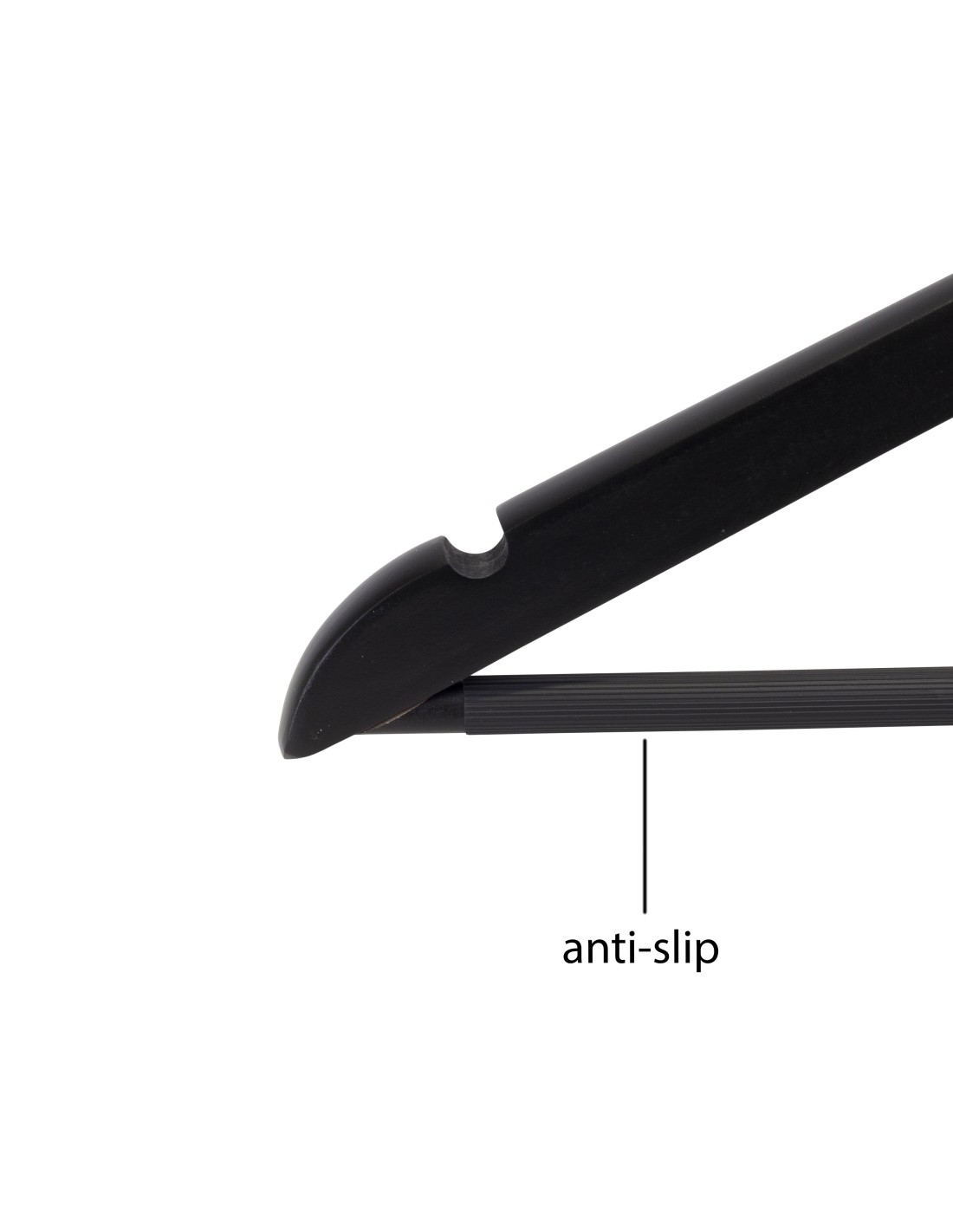 Cintre noir avec encoches et barre antiglisse, 44 cm, bois de lotus, crochet mat