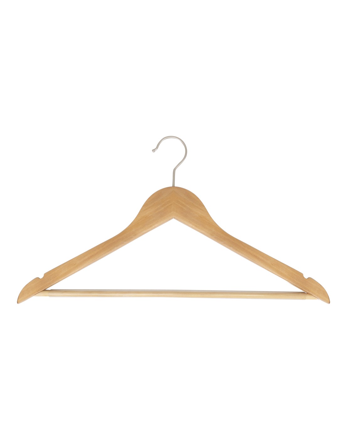 | Cintre légèrement galbé avec encoches et barre antiglisse pour pantalons, largeur 44 cm, bois de lotus, finition vernis transparent, crochet en nickel - carton de 100 pcs |