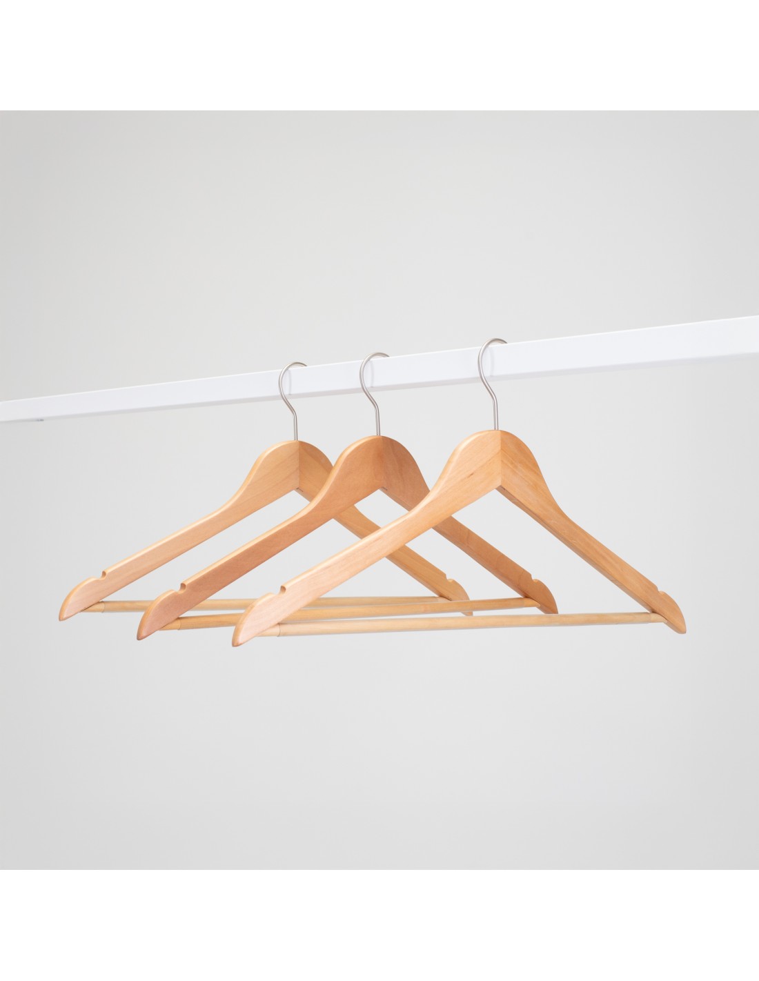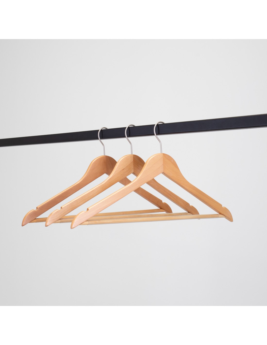 Cintre en bois avec encoches et barre antiglisse, 44 cm, crochet mat