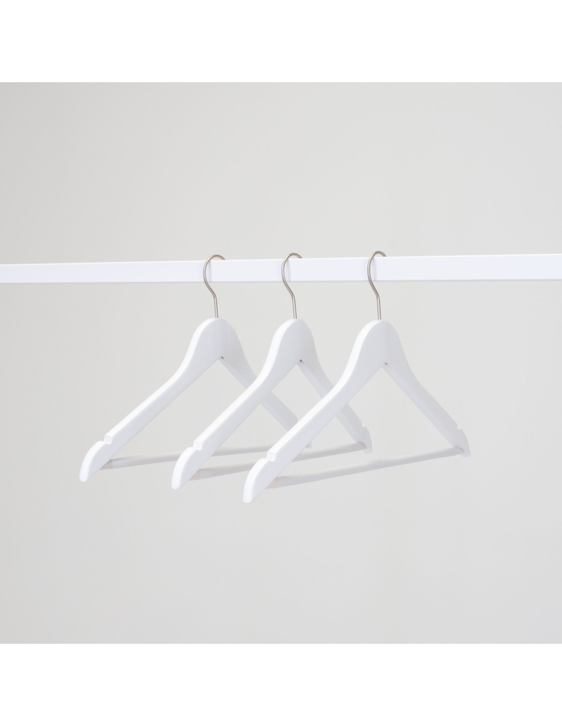 Cintre blanc avec encoches et barre antiglisse, 44 cm, bois de lotus, crochet mat