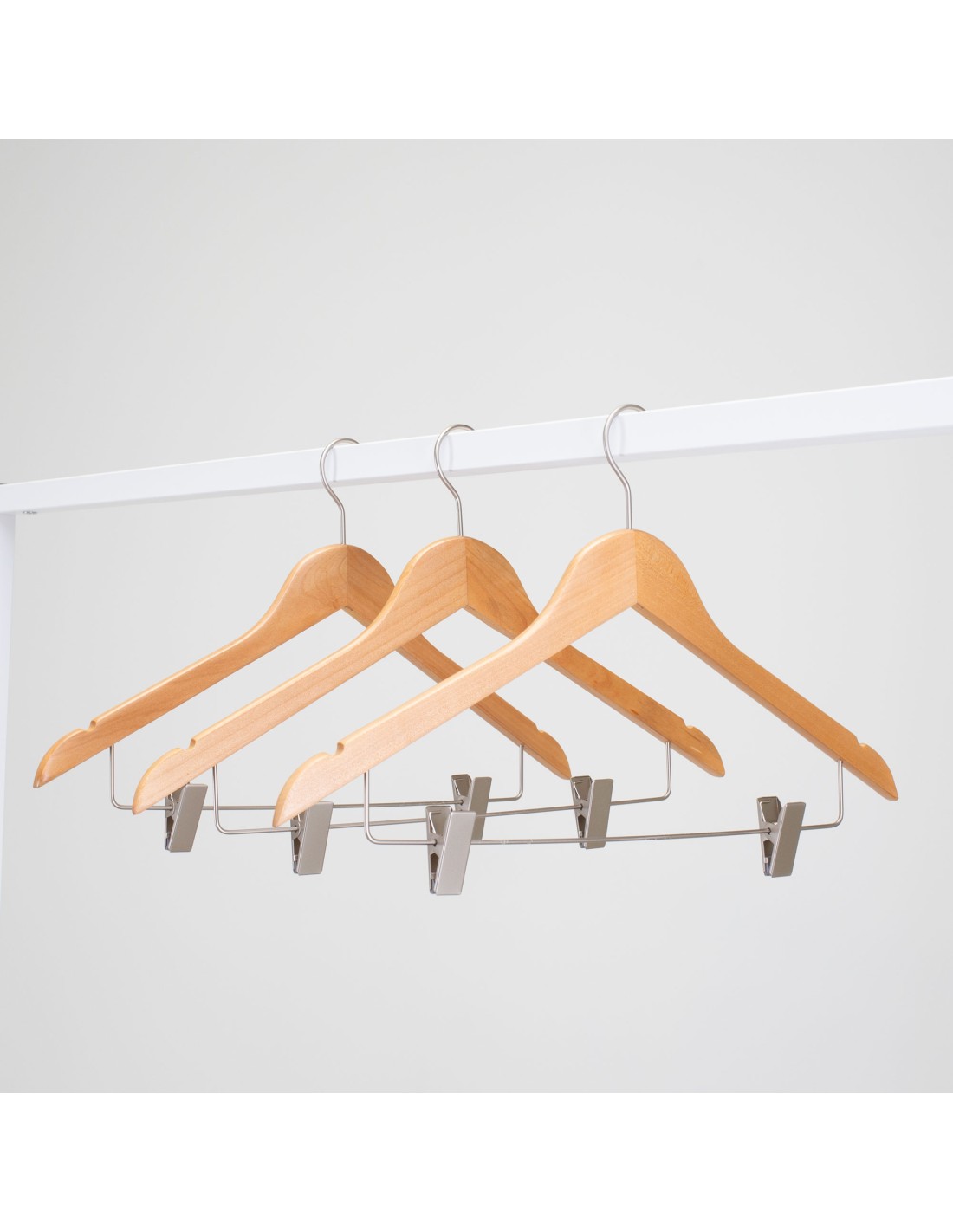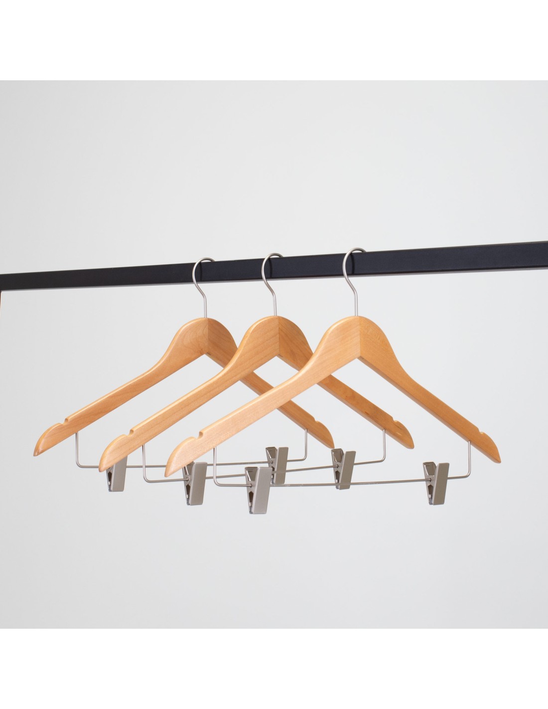Cintre en bois à pinces, avec encoches, 44 cm, bois de lotus, crochet mat