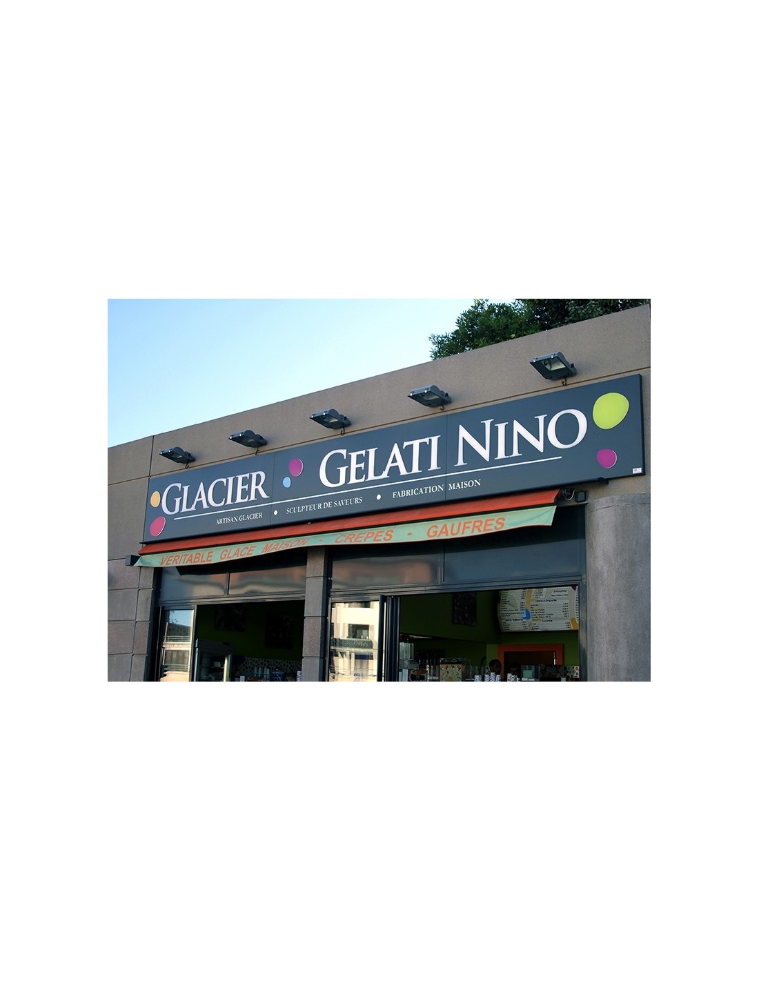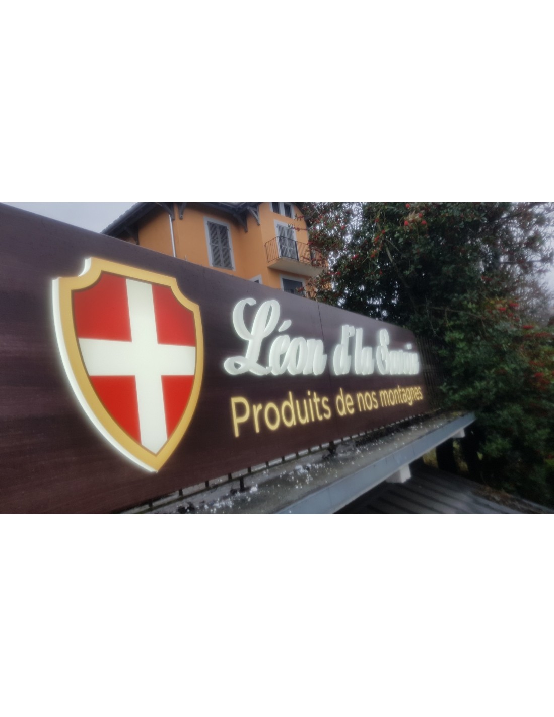 Panneau boite lumineux avec face aluminium ajourée épaisseur 60 mm, lettres talonnettes 15 mm