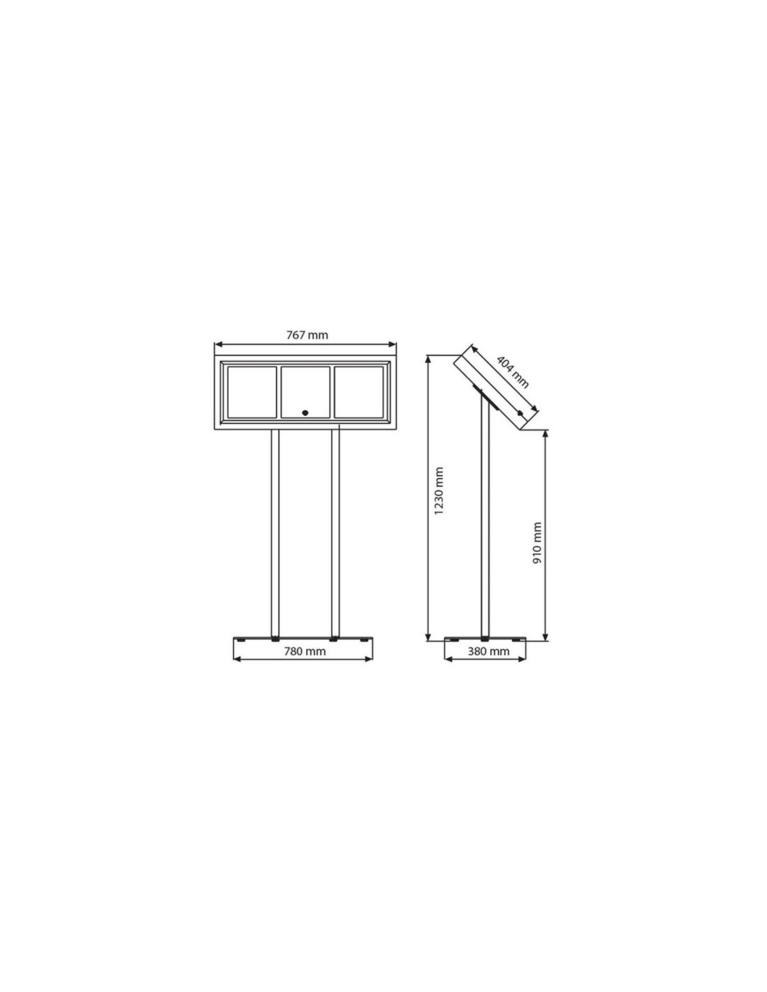 Structure en alu anodisé naturel très stable équipée d’un porte-affiche en plexiglass transparent amovible.