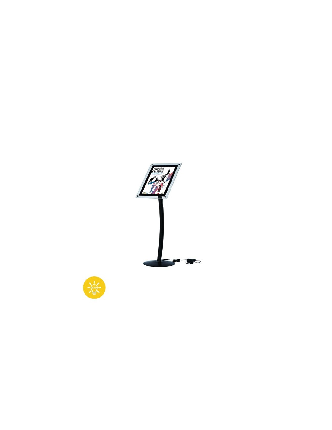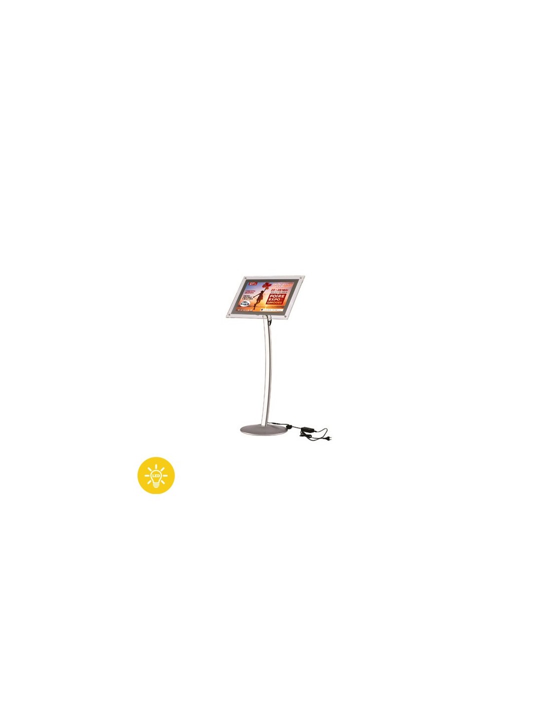 - Affiches protégées et enfermées par plaque plexiglass Câblage invisible dans le pied + adaptateur transformateur 220/240V + câble 2 m.