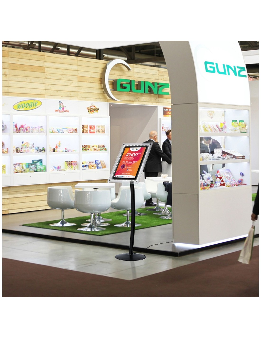 Structure en alu anodisé naturel très stable équipée d’un porte-affiche en plexiglass transparent amovible.