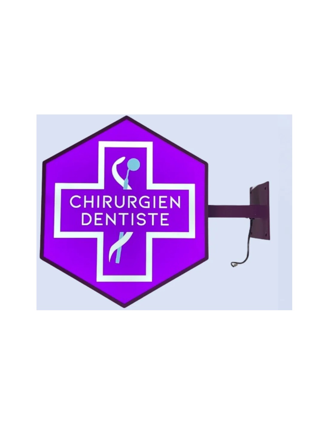 Choisir cette enseigne garantit une cohérence esthétique et professionnelle, évitant les dérives commerciales tout en rassurant le patient. Cette version lumineuse double face est spécialement conçue pour les chirurgiens-dentistes. Elle est conforme aux dimensions maximales autorisées par l’Ordre National des Chirurgiens-Dentistes (ONCD), intègre le logo officiel et peut recevoir un bandeau de spécialité.