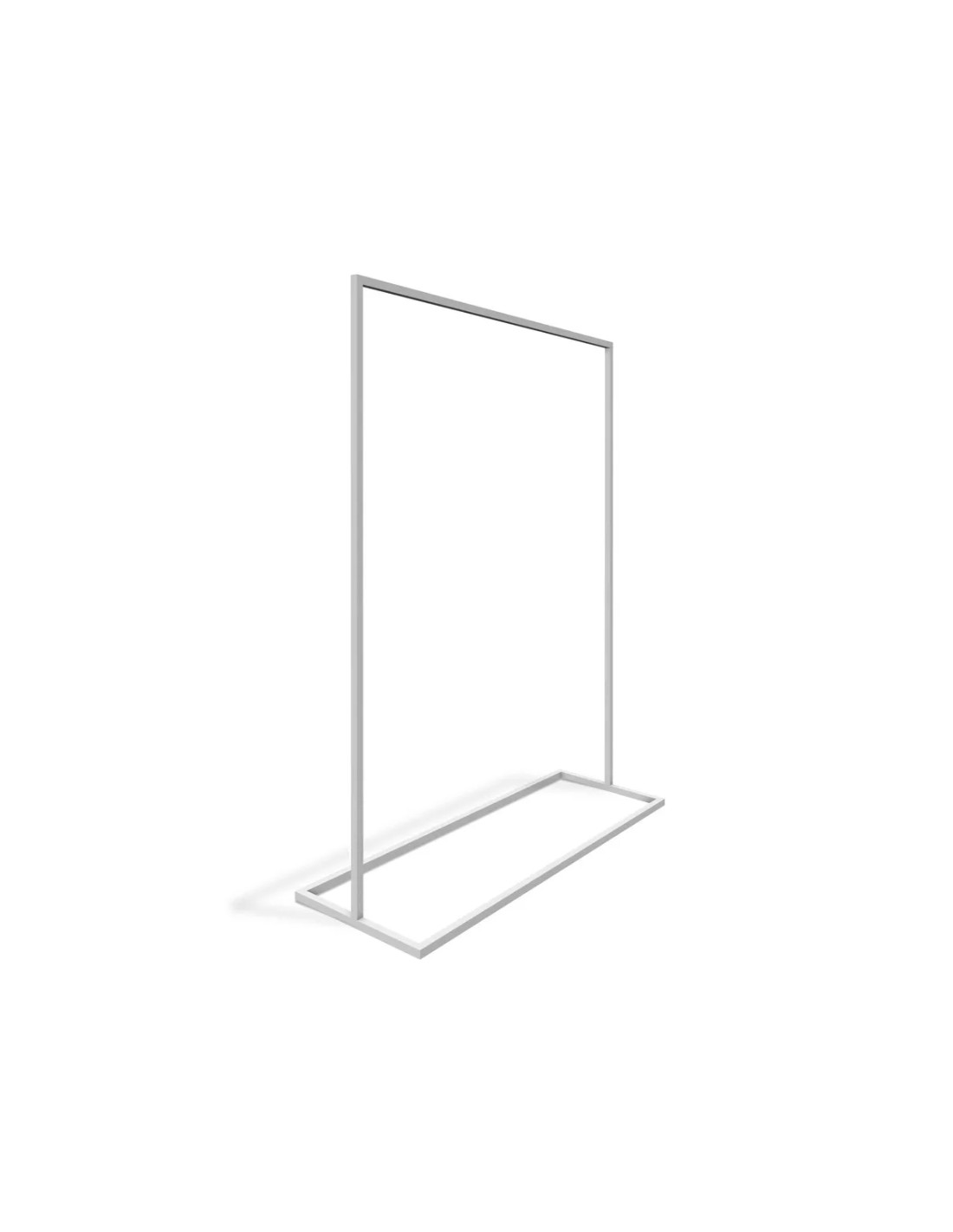 Portant stable modèle haut pour longues robes, tube carré de 25 mm en acier finition poudre structuré blan blanc mat, longueur 120 cm, hauteur 175 cm