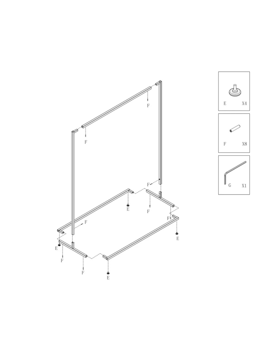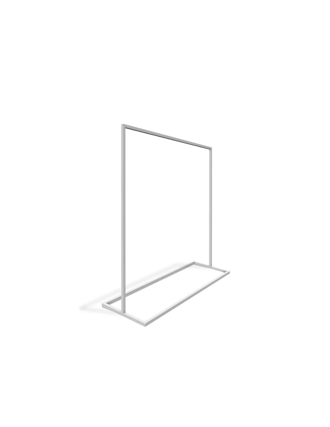 | Portant stable, tube carré en acier, finition poudre structuré blanc mat, longueur 120 cm, hauteur 155 cm |