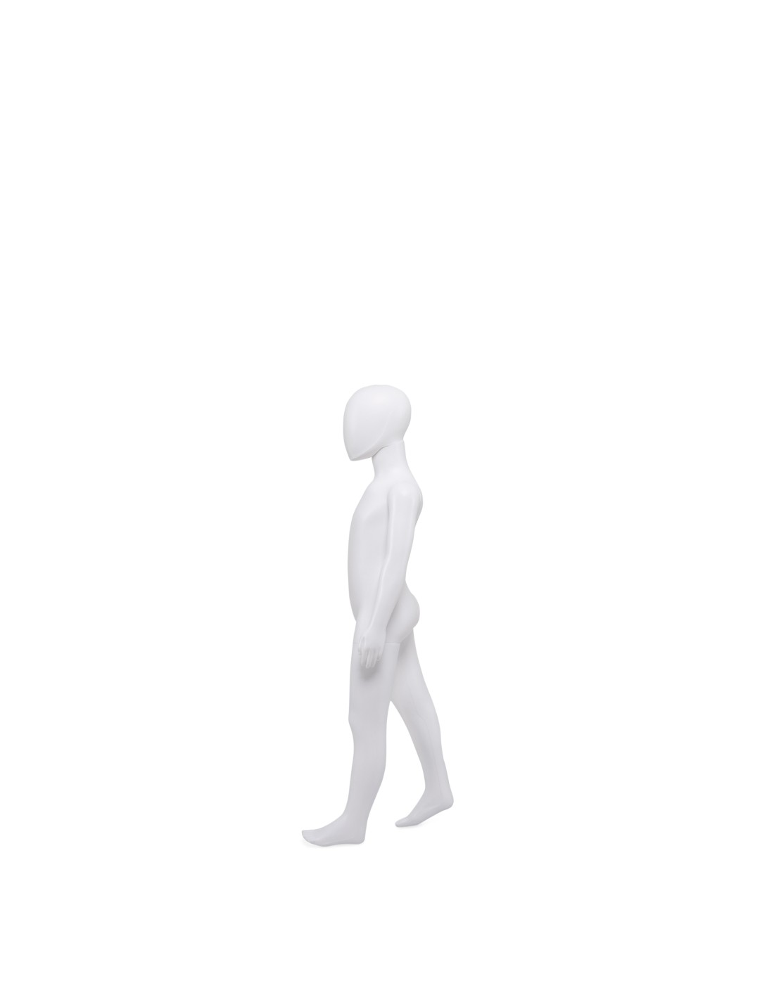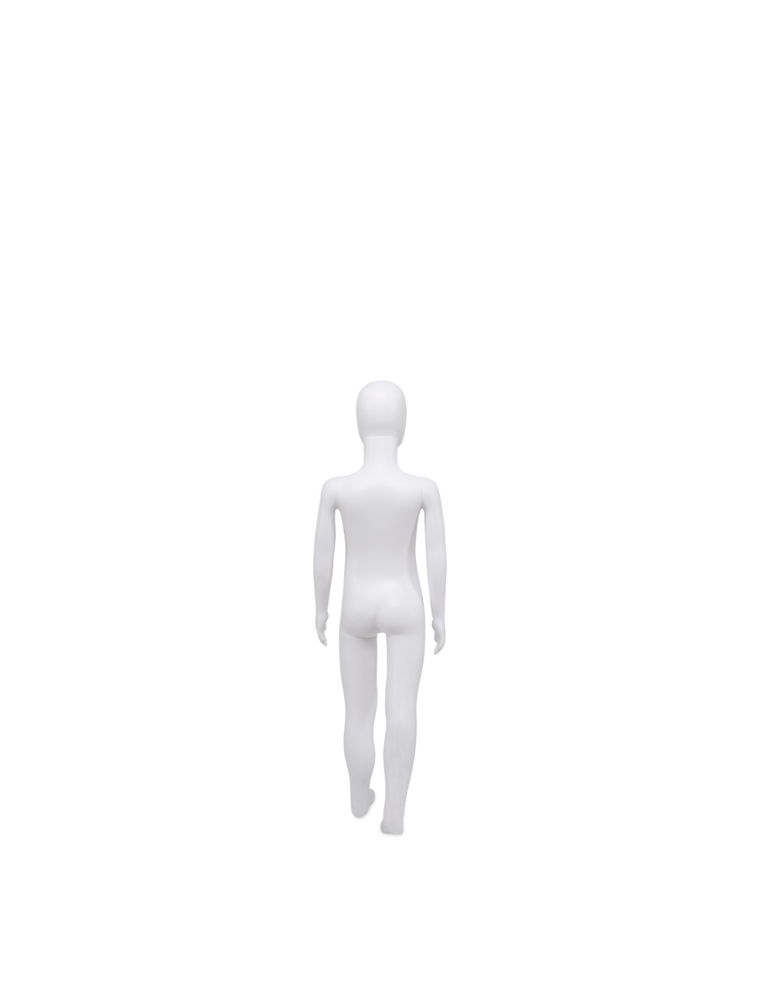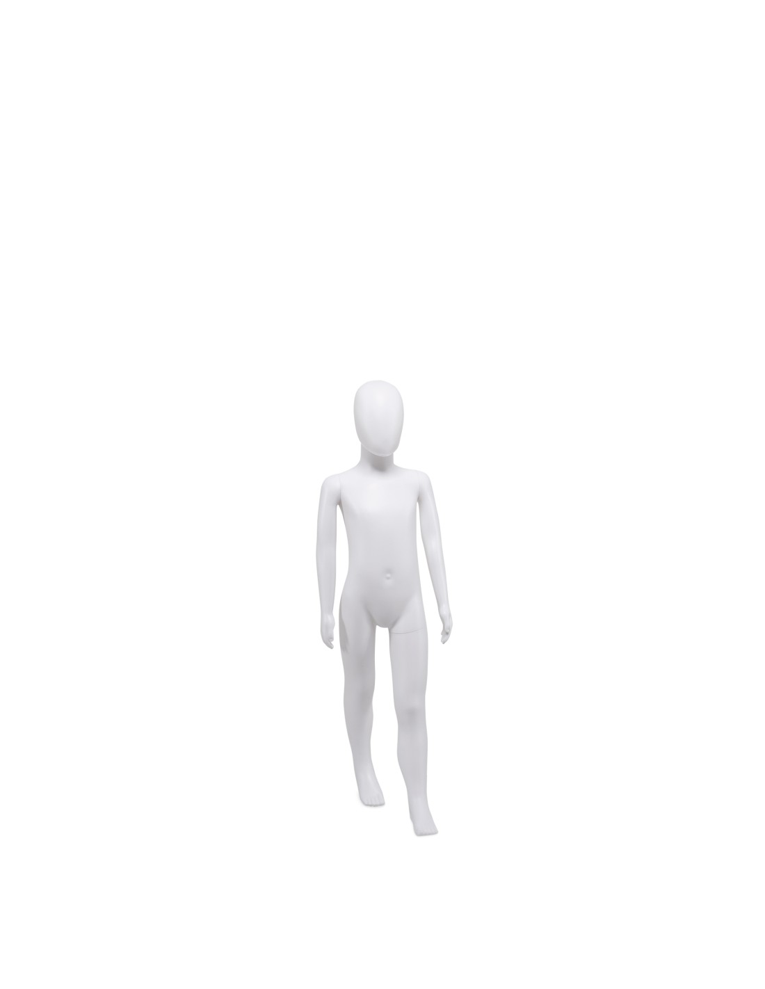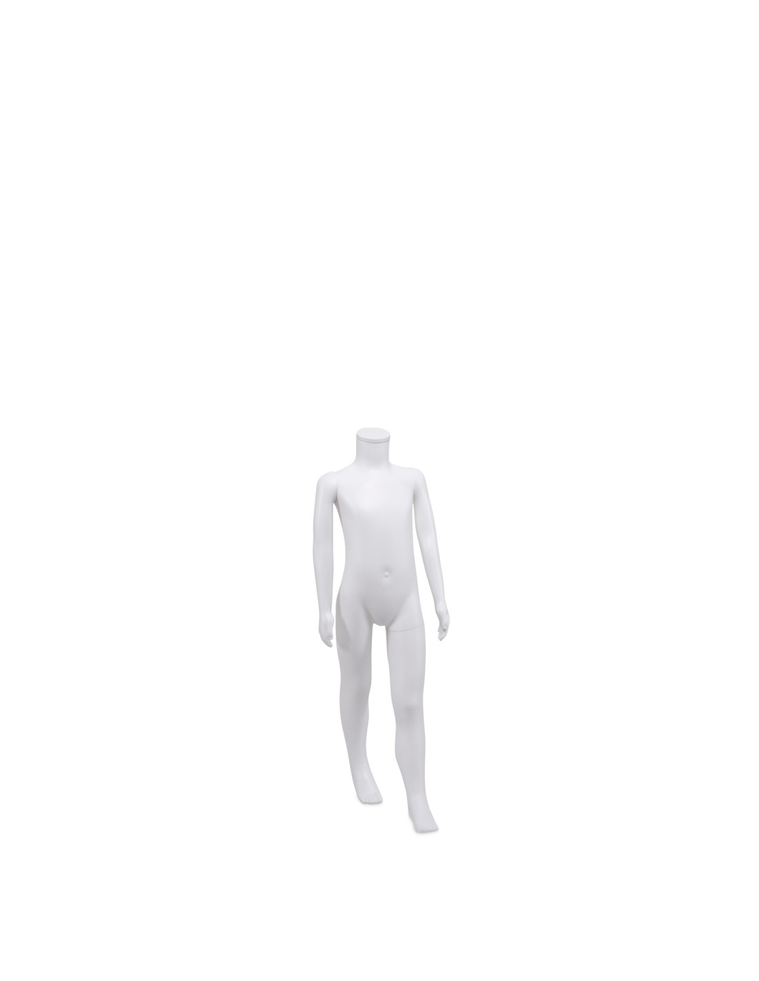 Mannequin enfant 5 ans, tête amovible, collection Unbreakable, matière plastique polypropylène antichoc, finition précoloré blanc. Tête interchangeable par un manchon plat. Livré avec une base rectangulaire en INOX brossé avec une tige au mollet