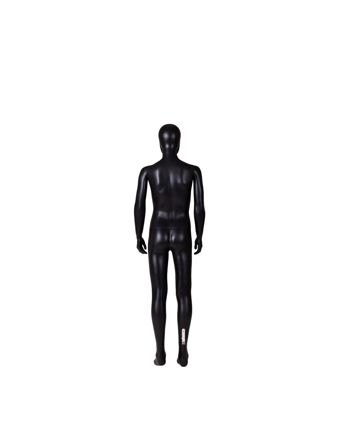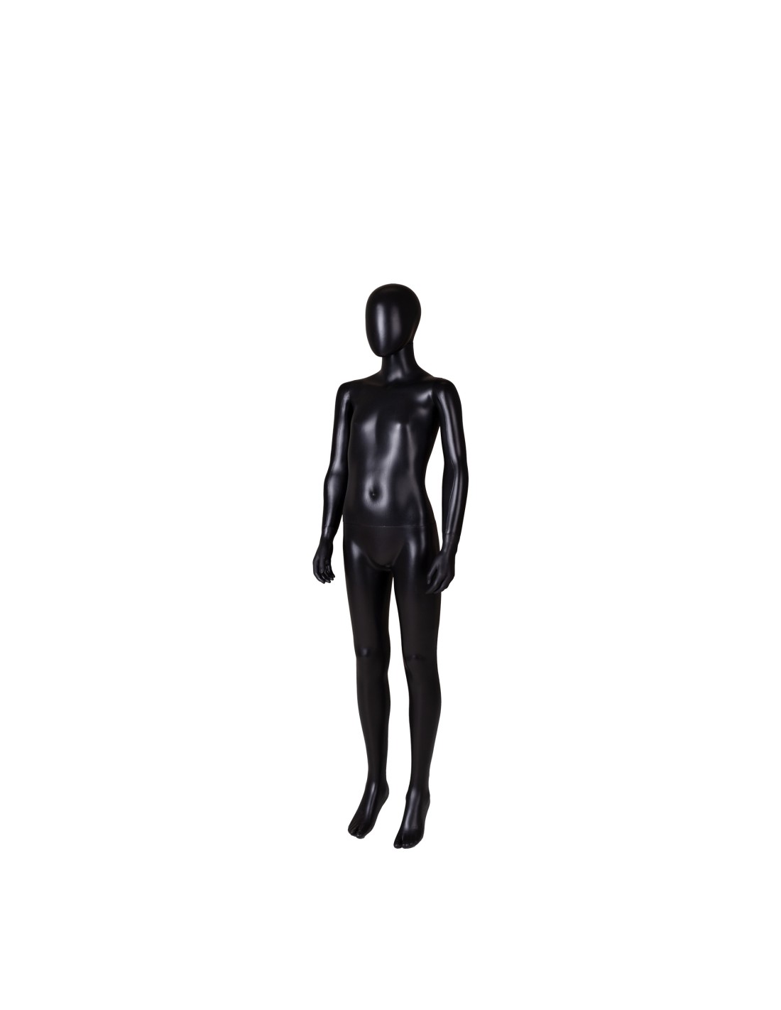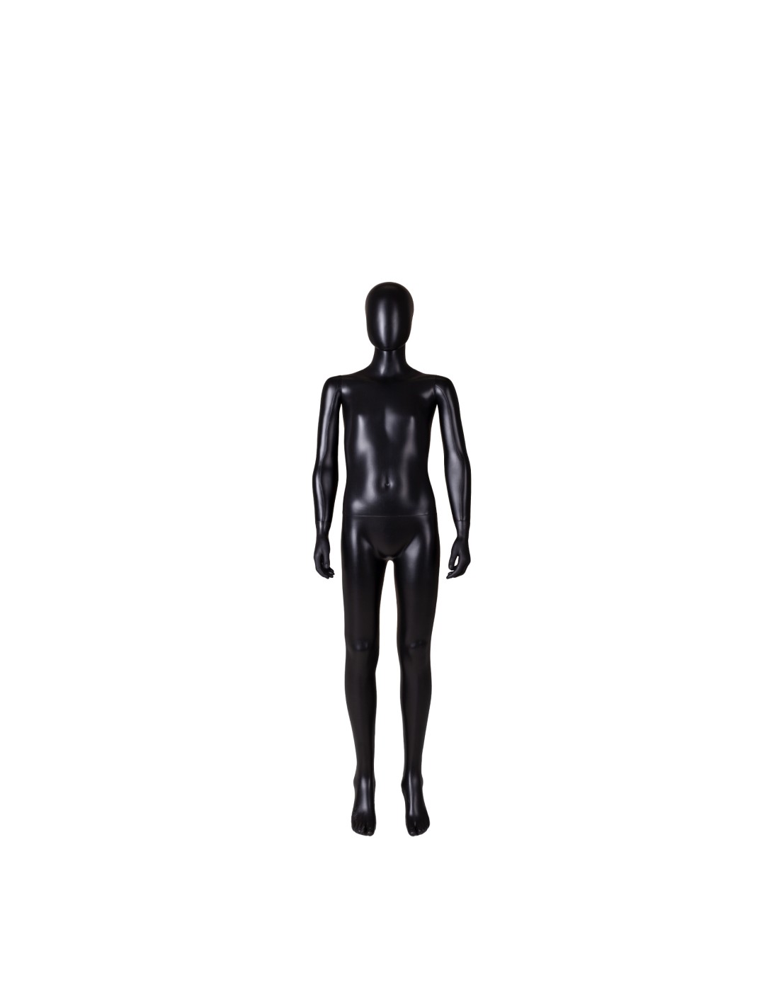 Mannequin enfant 12 ans, tête amovible, collection Unbreakable, matière plastique polypropylène antichoc, finition précoloré noir. Tête interchangeable par un manchon plat. Livré avec une base rectangulaire en INOX brossé avec une tige au mollet.