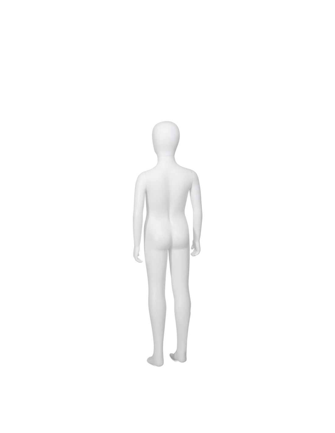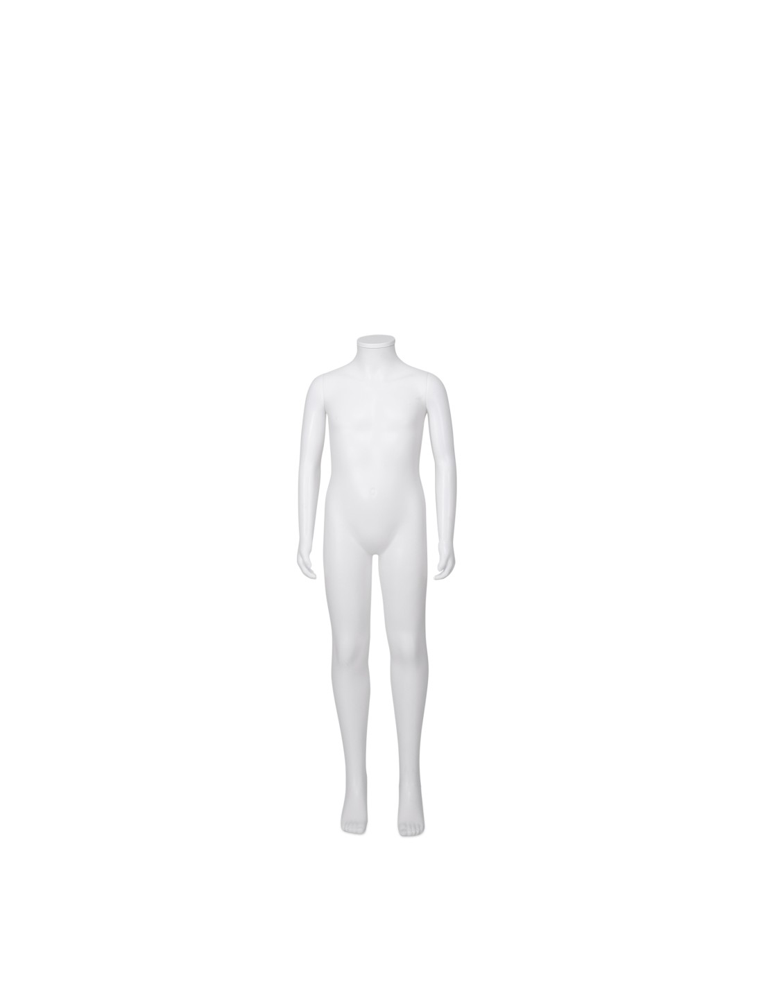 Mannequin enfant 8 ans, tête amovible, collection Unbreakable, matière plastique polypropylène antichoc, finition précoloré blanc. Tête interchangeable par un manchon plat. Livré avec une base rectangulaire en INOX brossé avec une tige au mollet.