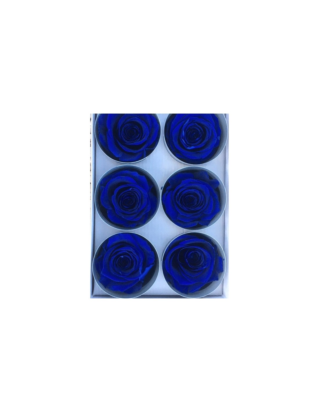 Boite de 6 roses stabilisées. Taille de la fleur : hauteur 5 cm plus tige 1 cm. Largeur 5/5.5 cm environ.