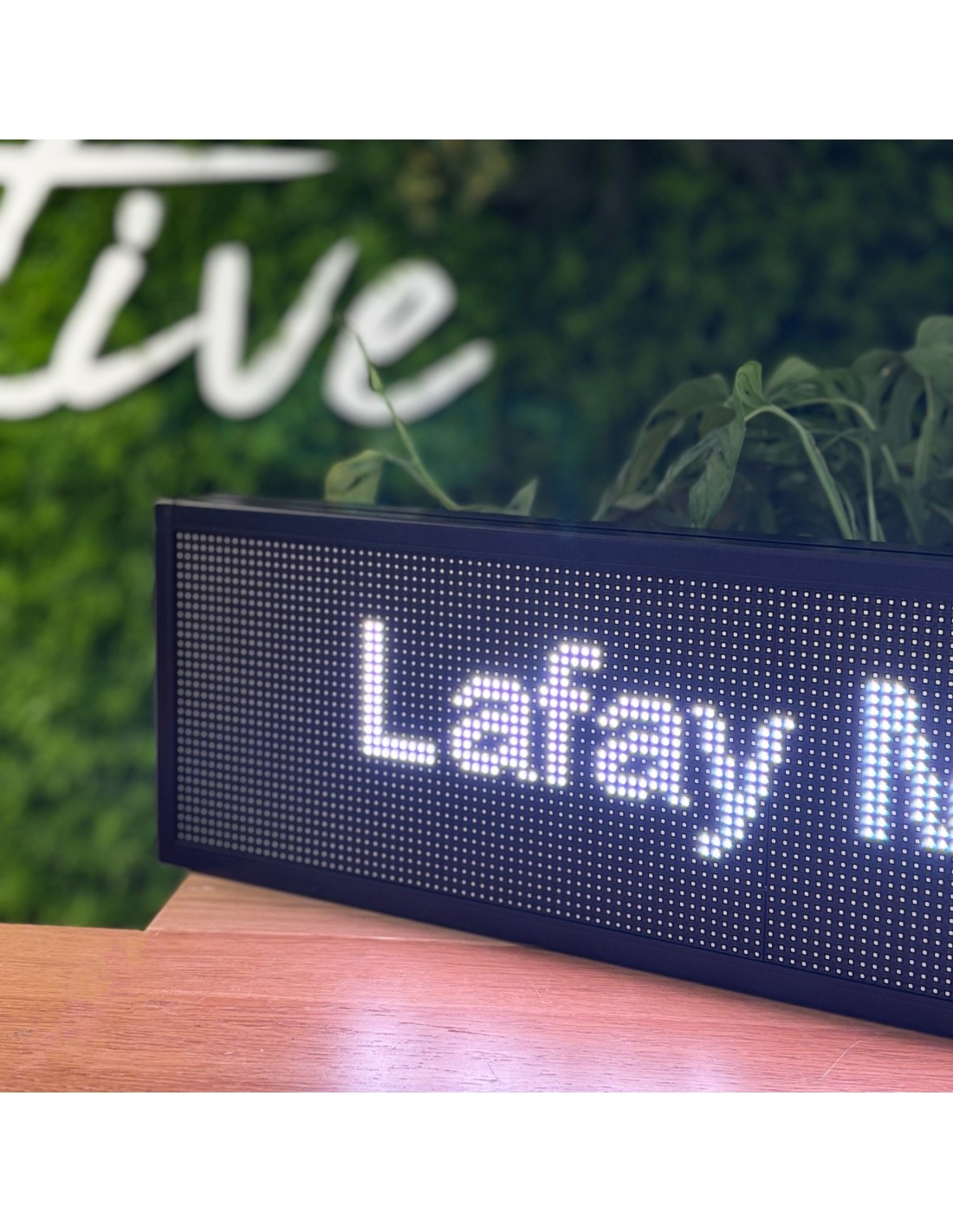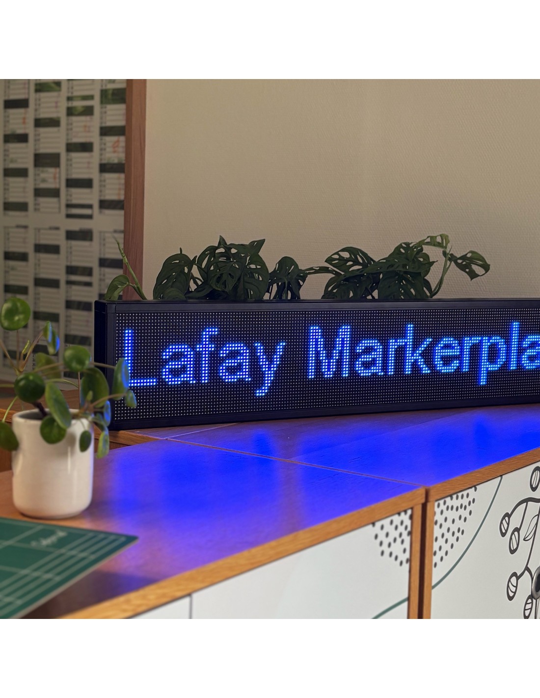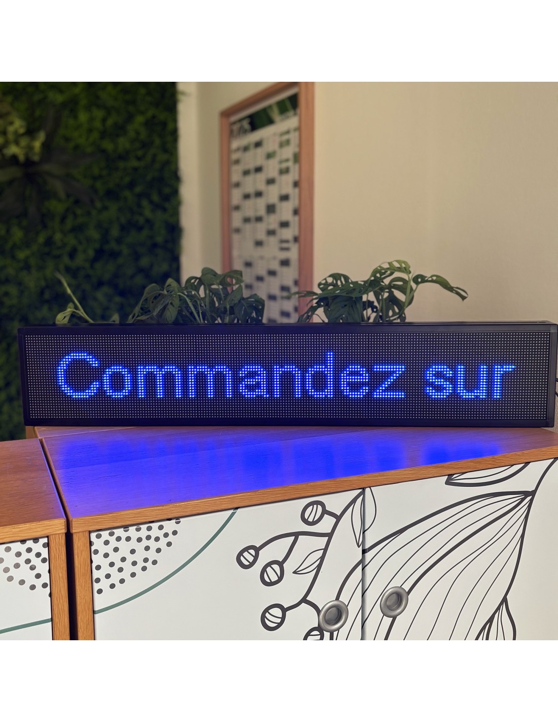 Les afficheurs dynamiques P5 Full Color sont des écrans bandeaux spécialement conçus pour la diffusion d’informations animées et colorées. Ils permettent l’affichage d’une multitude de médias : heure, date, température, texte, images, GIF, vidéos