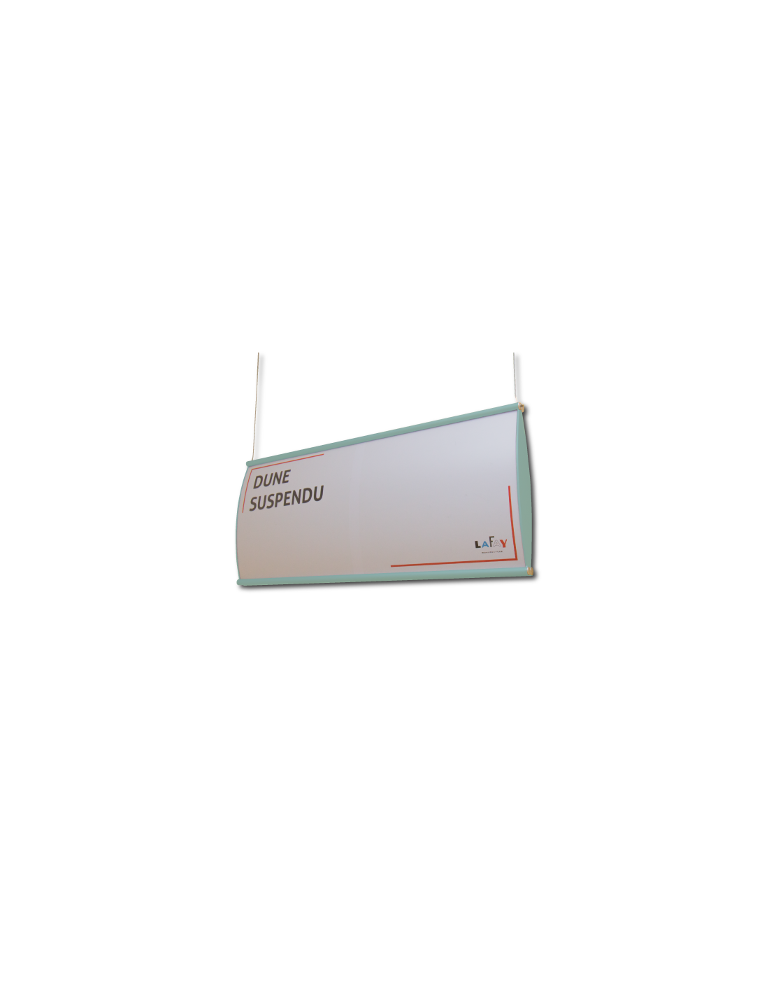 Fixation au plafond par 2 câbles inox et 2 entretoises.